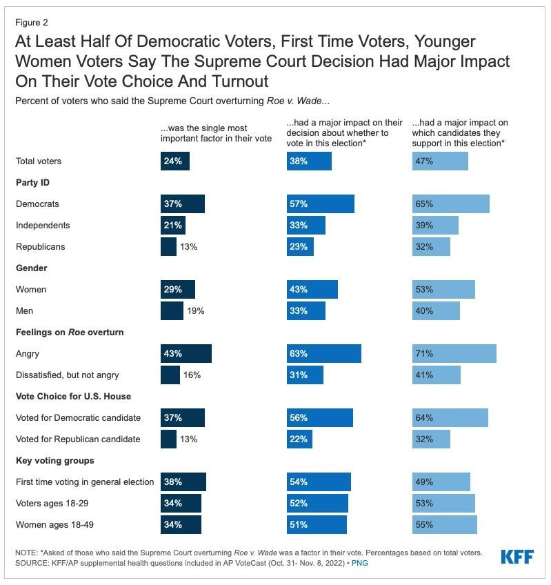 Abortion was a major factor in last week’s election in the United States. The overturning of Roe v. Wade motivated 57% of Democrats to get out and vote, but only 23% of Republicans.